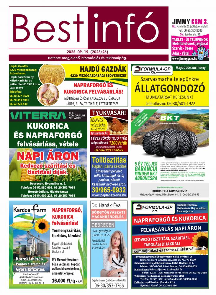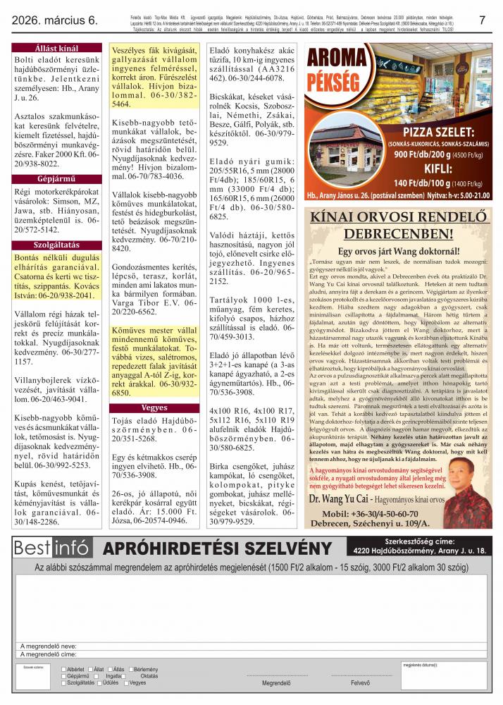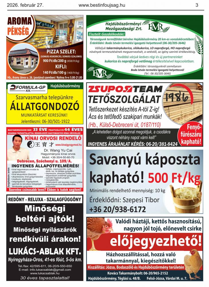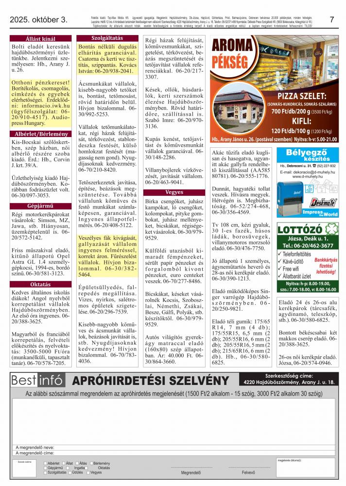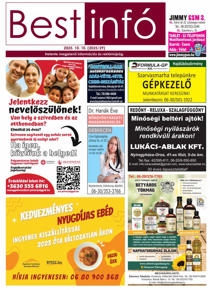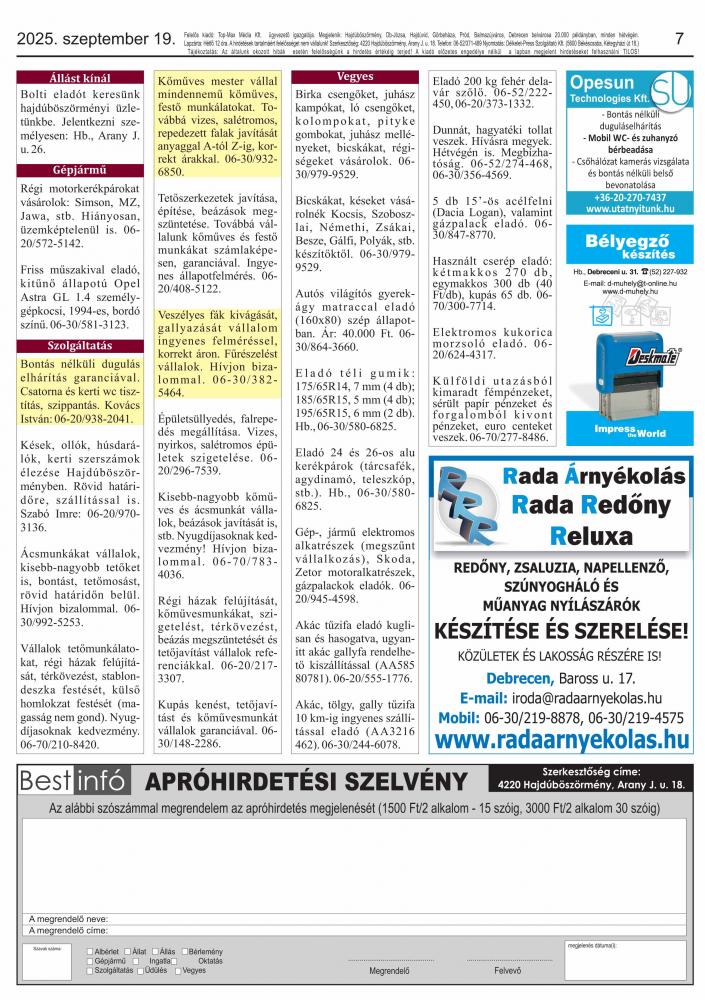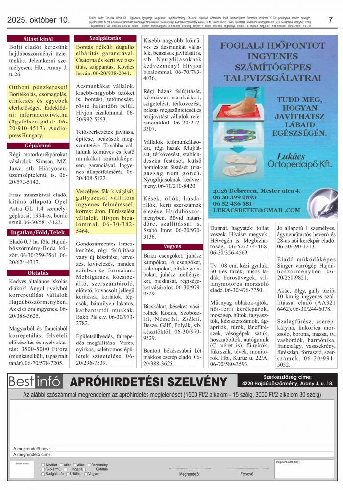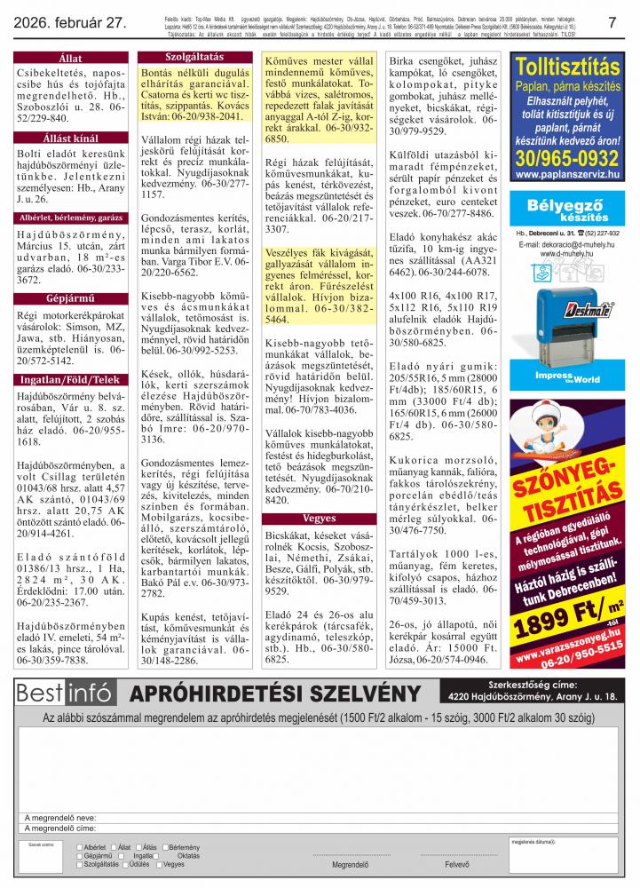 A lapban megjelent hirdetéseket a kiadó előzetes engedélye nélkül felhasználni tilos!