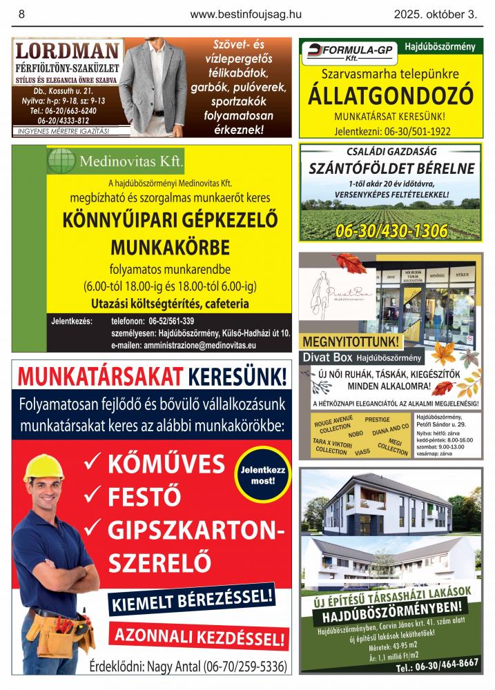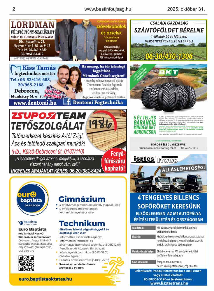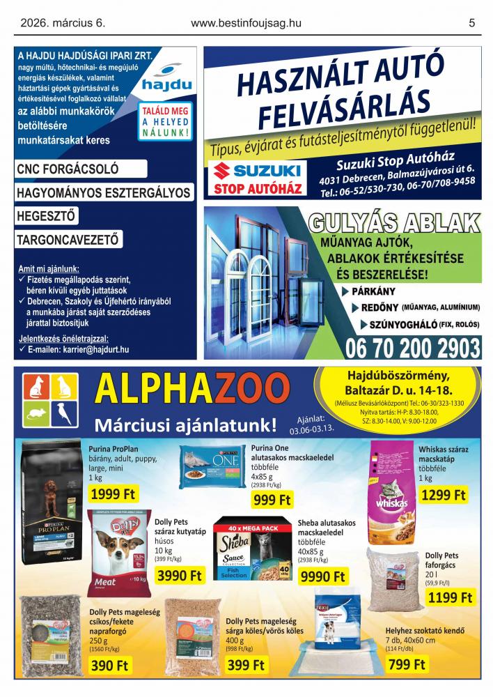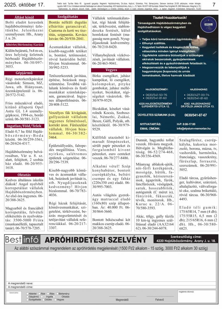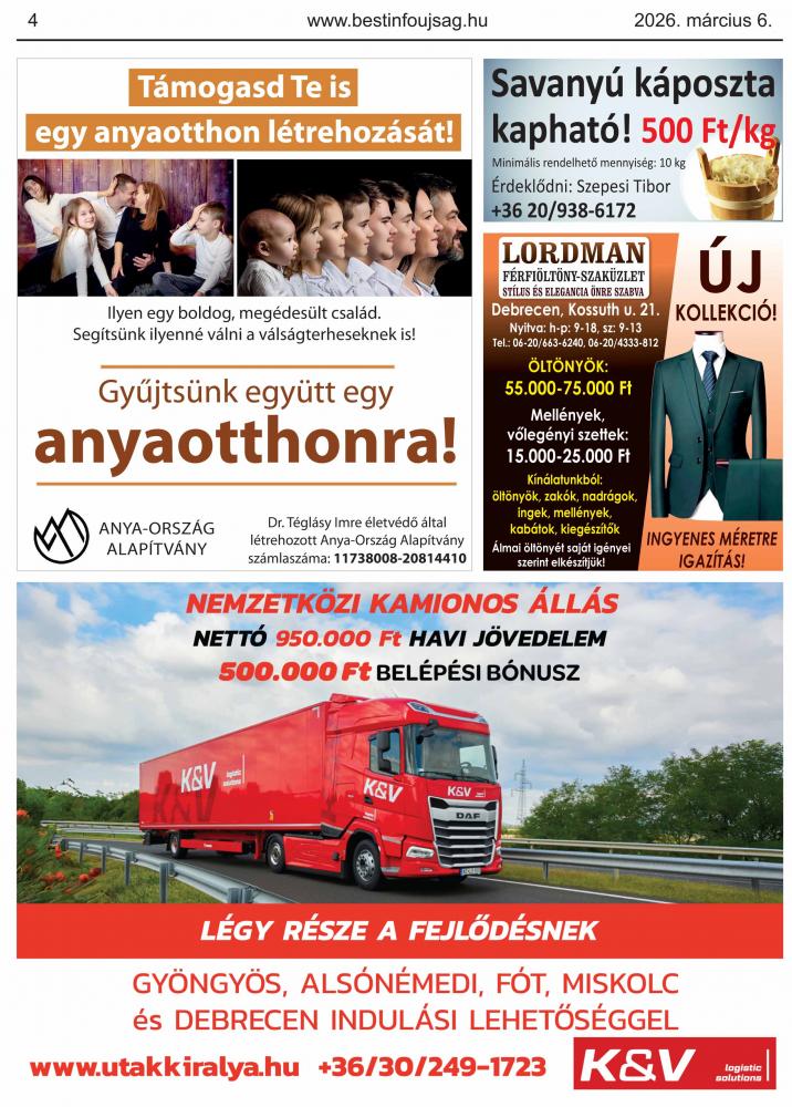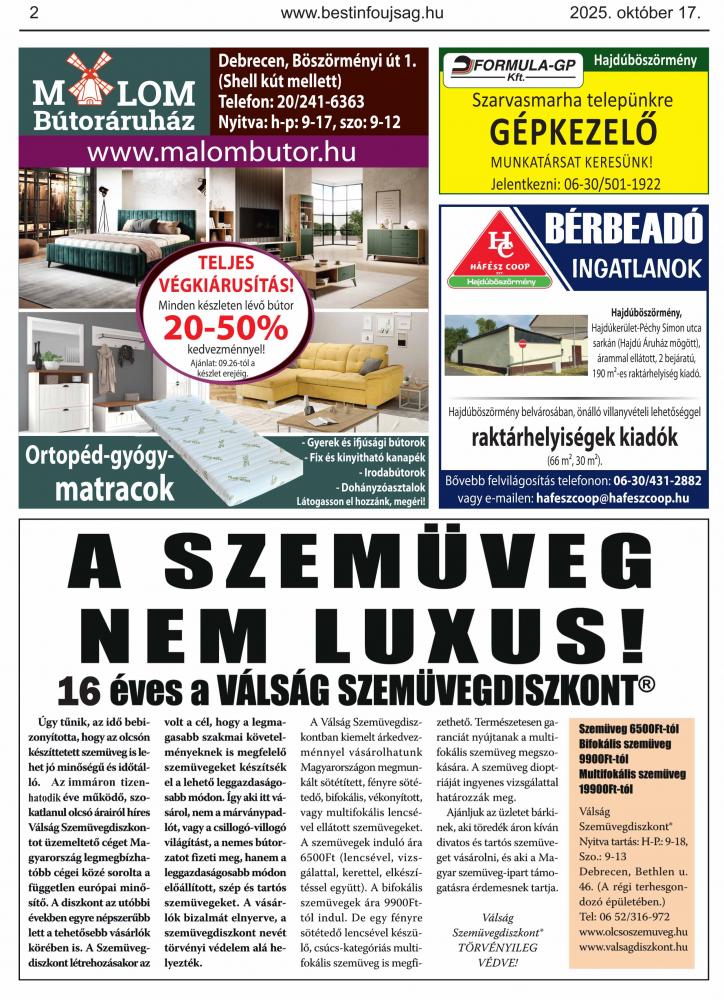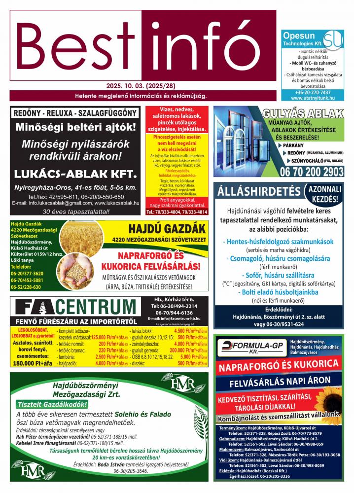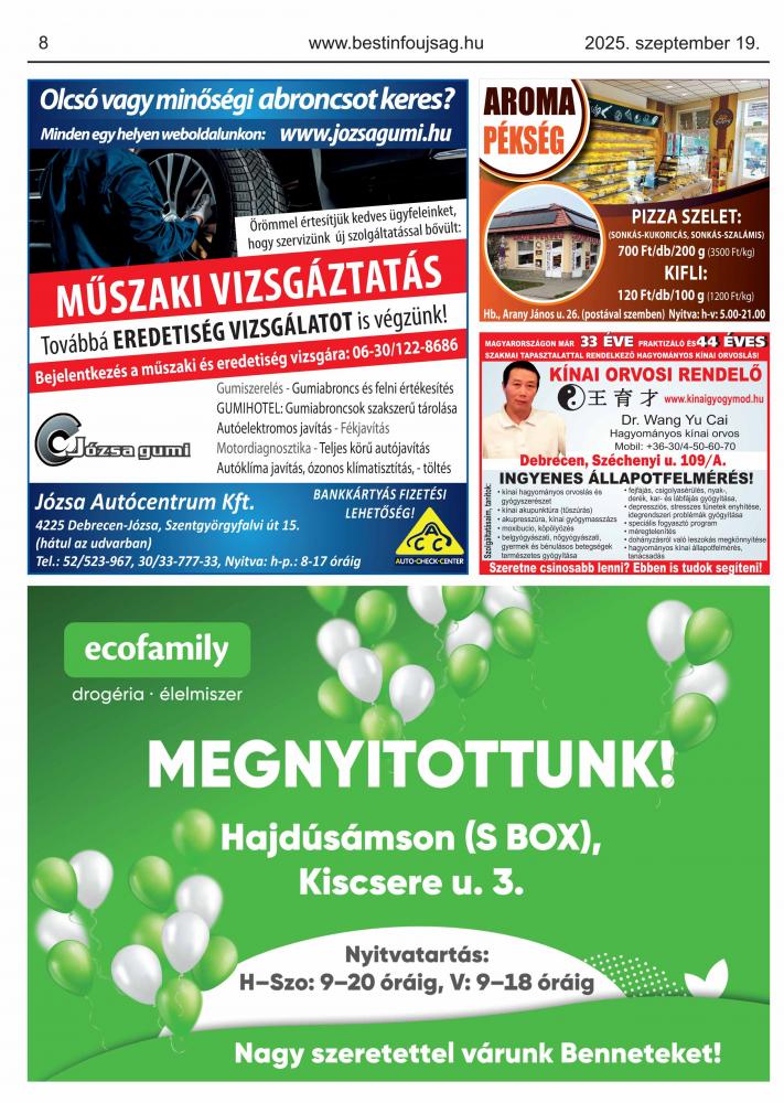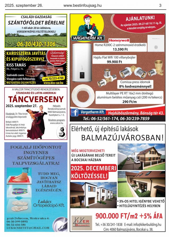 A lapban megjelent hirdetéseket a kiadó előzetes engedélye nélkül felhasználni tilos!