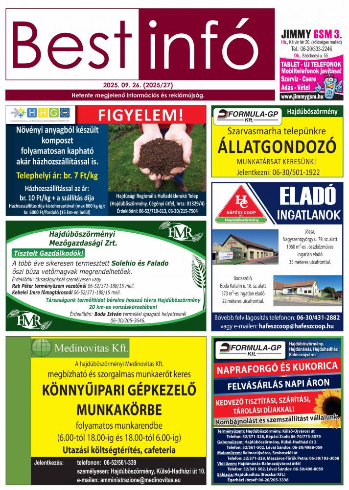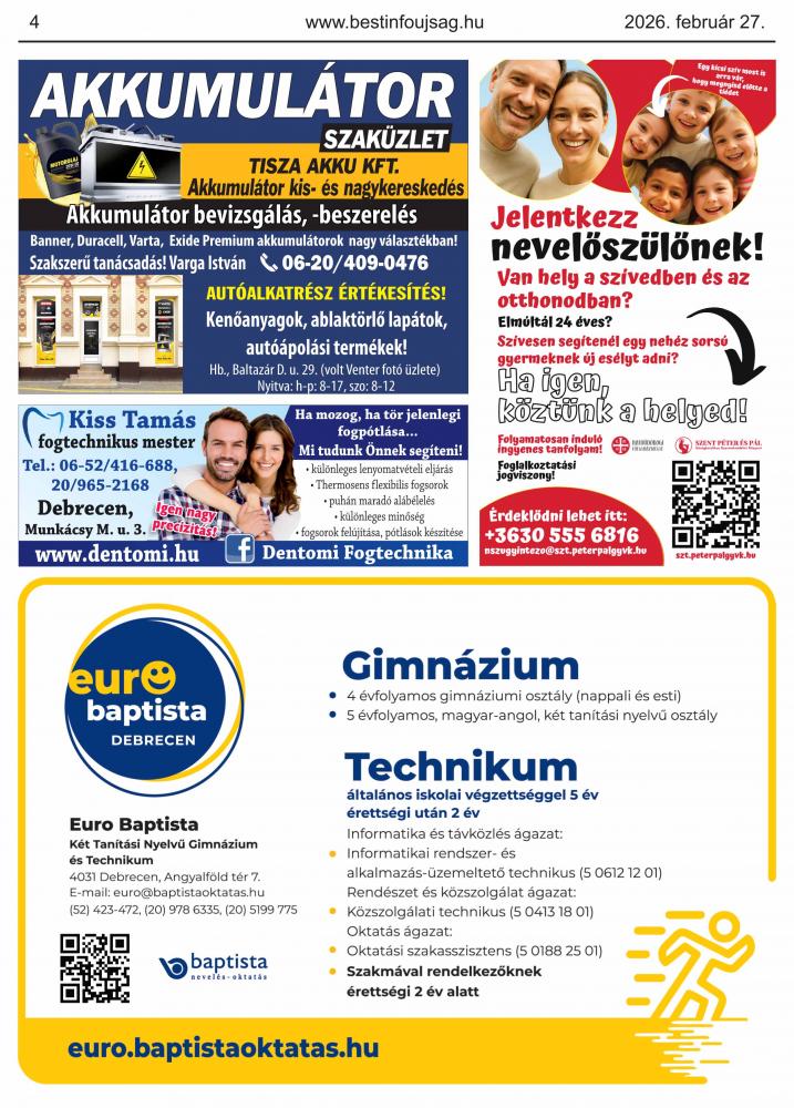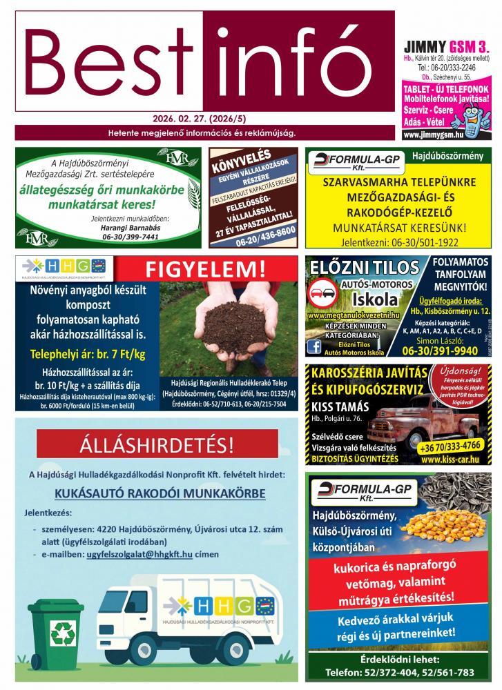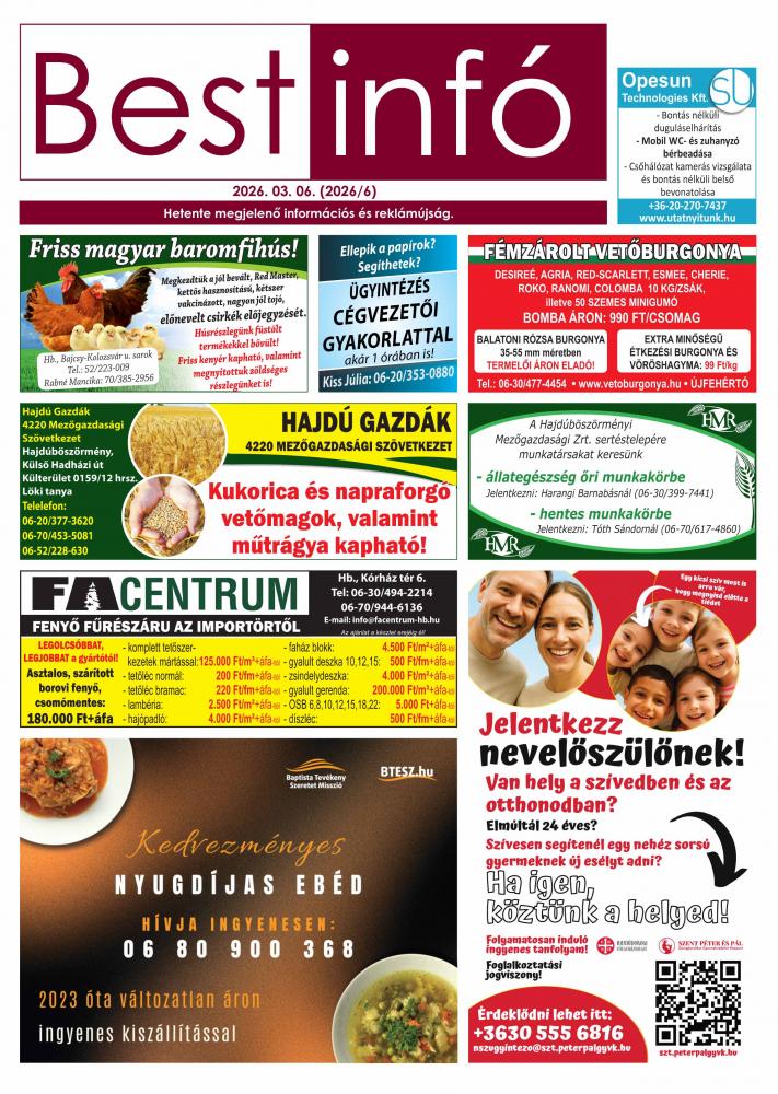 A hirdetések tartalmáért felelősséget nem vállalunk.