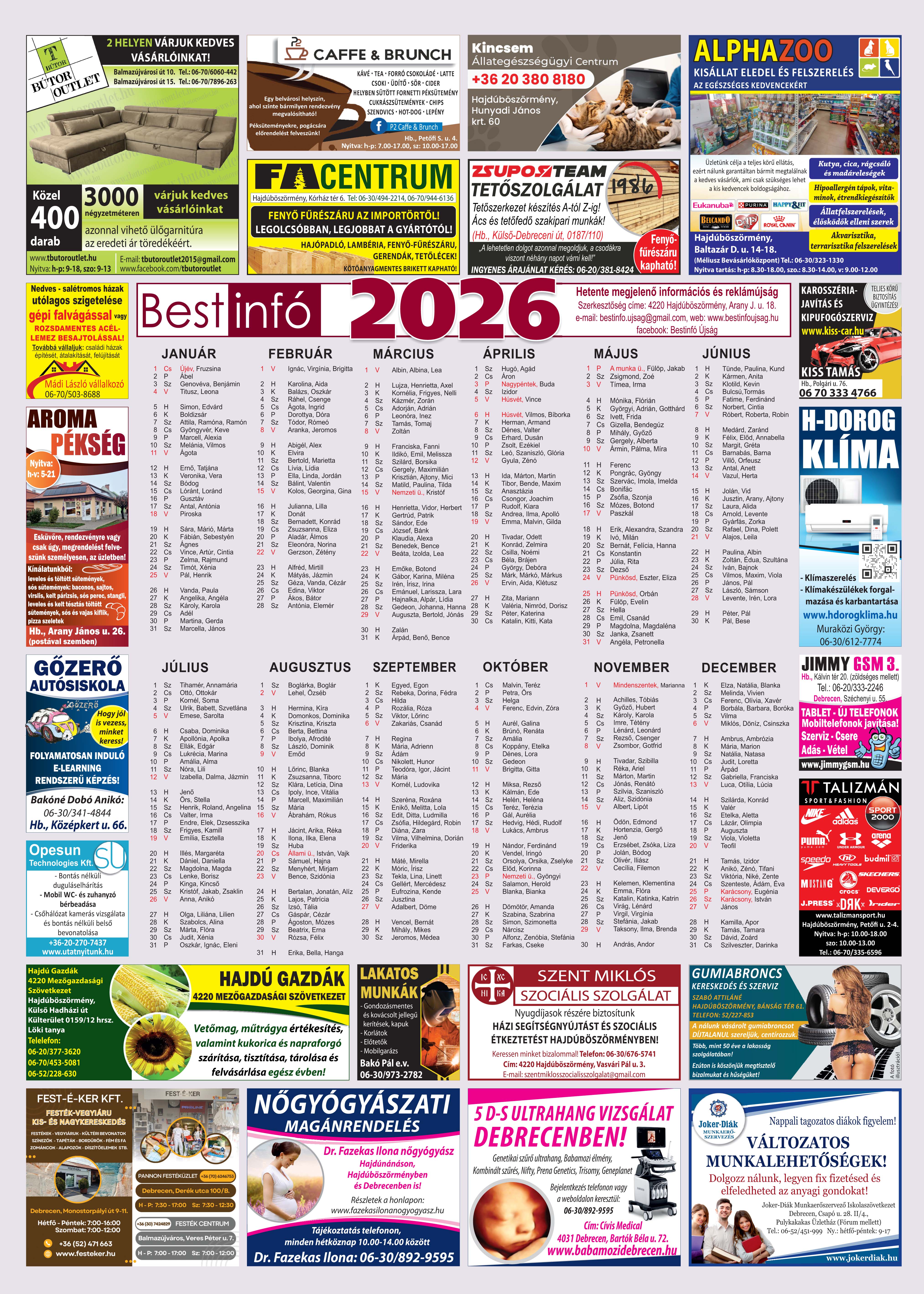- Megjelenik: Hajdúböszörmény, Debrecen-Józsa, Debrecen belvárosa, Hajdúnánás, Balmazújváros, Hajdúvid, Pród