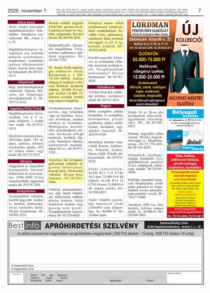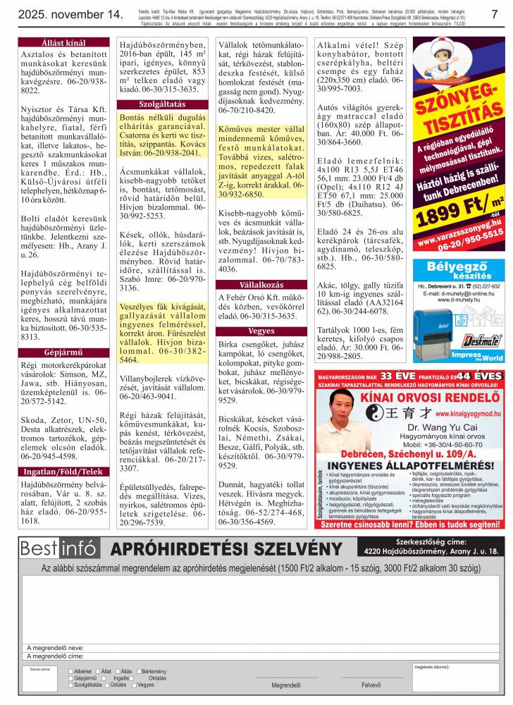 A lapban megjelent hirdetéseket a kiadó előzetes engedélye nélkül felhasználni tilos!