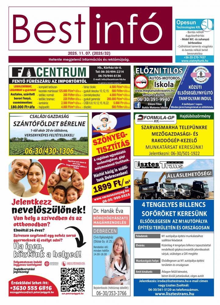 A hirdetések tartalmáért felelősséget nem vállalunk.